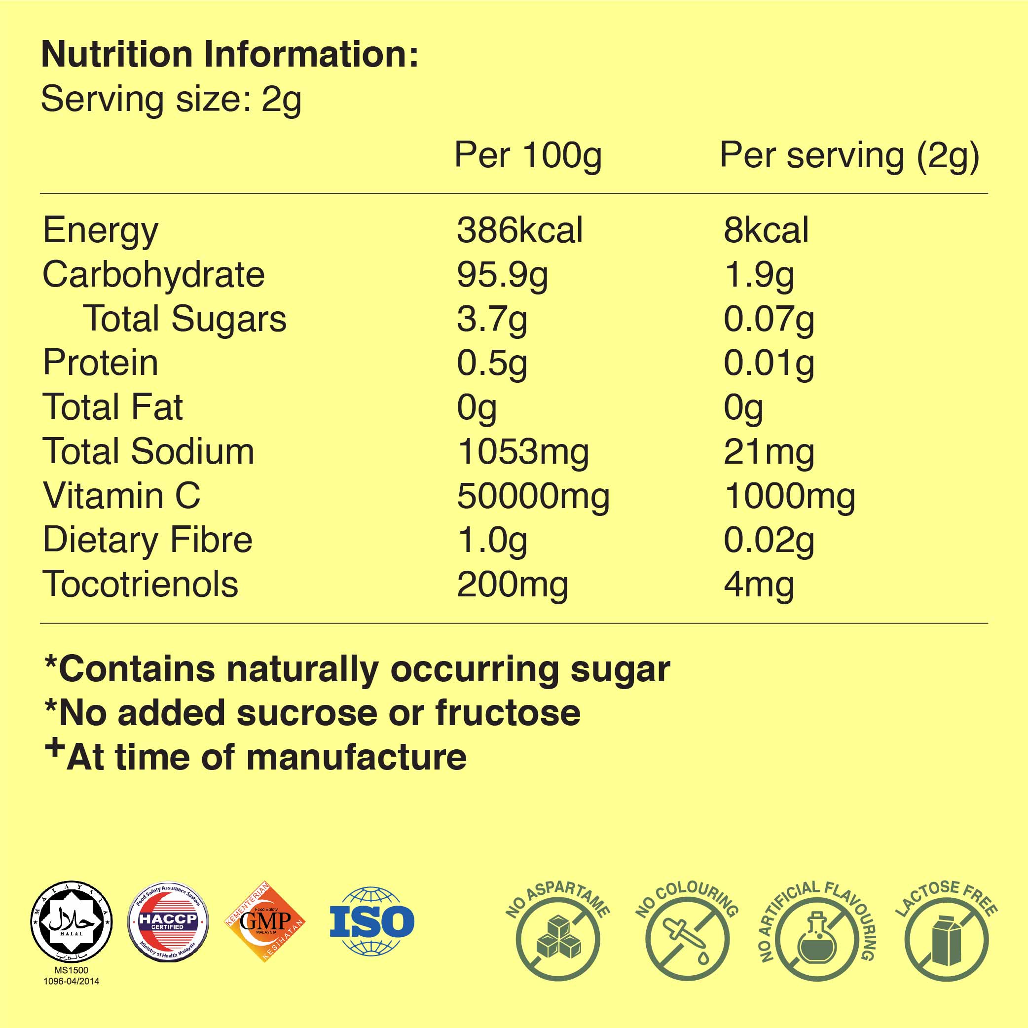 π‘ 1000mg Vitamin C + 1000mg Prebiotics in each sachet.
